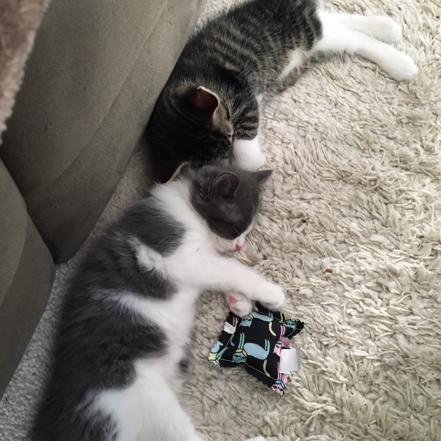 Are we going to be OK? One of the "girls' in the gang is getting used to catnip toys as you can see in the first photo.